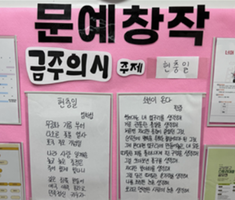 ▲ 문예창작학과 게시판   문예창작학과에는 학과 학우들을 위한 특별한 행사가 있다. 바로 ‘금주의 시 프로젝트’이다. 이 행사는 오직 자필로 써진 작품만 받는다는 특별함이 있다. 디지털이라는 편리한 기술이 있는 지금, 손 글씨로 적힌 시는 오히려 눈길을 사로잡기도 한다. 또한 아날로그가 주는 낭만을 다시 한번 느낄 수 있다. 해당 프로젝트는 학생회와 학우들이 격주로 진행한다. 주제가 정해진 첫 주에는 학생회 내부에서 선정한 시 두 편을 개재한다. 그 시를 보고 학우들은 창작 시 혹은 주제에 부합하는 시를 필사해 문예창작학과 카카오톡 채널로 응모하면 된다. 주제는 문예창작학과 문화국에서 정한다. 계절감을 느낄 수 있는 주제나 해당 주에 있는 기념일을 주제로 선정한다. 3월에는 봄 하면 떠오르는 단어들인 봄비, 새출발 등이 주제로 선정되었다. 기념일 관련 주제는 광복절, 현충일 등이 있다. 당선된 작품은 본관 2층 문예창작학과 게시판에서 확인 할 수 있다. 상품으로는 본관 1층 카페 베리타스 음료 쿠폰이 지급된다. 과거 당선작은 문예창작학과 인스타그램(@hupsung_crwr28)에서 확인할 수 있다. 지금까지 당선된 작품은 총 29개이다. 작품 대부분이 필사 시였다. 창작 시의 비율은 약 30%로 현저히 낮은 숫자를 기록했다. 해당 프로젝트의 취지를 살리기 위해선 창작 시의 비율은 중요한 역할을 한다. 또한 공모전의 형태를 띤 프로젝트이기에 창작 시의 비율이 더 높아져야 한다. 문예창작학과 학회장(이진아 20학번)은 문예창작학과에 재학 중임에도 불구하고 시를 어려워하는 학우들이 많아 계획하게 되었다고 전했다. 문예창작학과 학회장(이진아 20학번)이 아이디어를 얻은 곳은 본관 1층 복도 게시판에 붙어있는 필사 시 두 편을 보고 나서이다. 시를 게재한 학우에게 정식으로 제안한 뒤, 이번 1학기부터 진행하고 있음을 알렸다. 낮은 참여율에 관해 이야기하며, 게재된 시를 읽는 것도 일종의 참여라는 말을 전했다. 또한 타 학과 학생들도 시를 읽고 위로와 힘을 얻었으면 좋겠다고 전했다. 원칙적으로는 시만 응모할 수 있다. 하지만 주제로 5·18 민주화 운동이 선정되자 전남매일신문 기자 일동이 작성한 성명서가 당선되기도 했다. 비슷한 사례로 주제가 현충일인 주에는 한강 작가의 「소년이 온다.」의 한 장면을 필사한 것이 당선되었다. 이렇듯 다양한 작품이 당선되기 때문에 부담 없이 응모해 볼 수 있다. 필사하면서 여러 가지 지식을 얻을 수 있고, 창작 시를 작성하며 자신의 실력을 알아볼 수도 있다. 문예창작학과 특성상 많은 시를 읽어보고 경험하는 것이 중요하다. 또한 자기 작품을 작성함으로써 더욱 성장해 나갈 수 있다. 문예창작학과 학생회에서 진행 중인 ‘금주의 시 프로젝트’는 학과에 대한 애정과 개인의 역량을 늘리기 좋은 프로젝트이다. 해당 프로젝트는 올해 1학기에 정식으로 시작되었으며 내년 3월이 되면 1주년이 된다. 뜻깊은 프로젝트이니 앞으로 더 많은 학우의 관심과 참여로 오랫동안 지속되길 바란다.